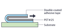 含被粘合體/耐熱薄雙面膠帶。 在彎曲 FPC 等斥力較強的表面上粘貼時也具有超強粘力的雙面膠帶。