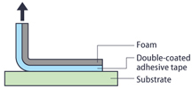 此種雙面膠帶具有較高的推出性能,而且在彎曲表面上具有良好的粘性。
