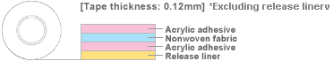 Nitto 的雙面膠帶 5015ELE 由涂有壓敏丙烯酸粘合劑(低排放量)的無紡布組織基材制成。