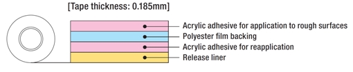 產品亮點 該厚型雙面膠帶在各種被粘合體上均具有顯著的粘合強度。 不僅可重復使用,甚至可粘貼在粗糙表面上。