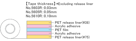 Nitto 無基材膠帶 5025T 由改性壓敏丙烯酸粘合劑制成,在表面能量低的被粘合體需要特別高的粘合性時,該膠帶可用作一般的粘貼膠帶。