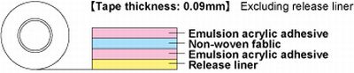 Nitto 的雙面膠帶 D2061 由涂有壓敏丙烯酸粘合劑的無紡布組織基材制成。