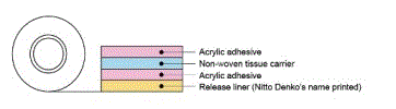 Nitto D5399 系列雙面膠帶由改性特定丙烯酸粘合劑制成,該粘合劑涂在透明或黑色的聚酯基材上,通過離型紙得以保護。