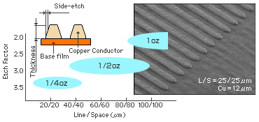 一個通過纖薄基底 Pl 降低偏向力從而將提高的靈活性與雙面微線加工相結合的電路板。