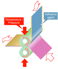 層壓技術是一種通過使用粘合劑或粘結劑對各種功能聚合物薄膜進行分層的一種技術。 層壓技術包括干層壓、濕層壓、卷對卷持續層壓以及逐個批量層壓。 Nitto Denko 在粘合劑和粘結劑(內部制造)材料設計、層壓設備設計、層壓條件(溫度、速度、壓力等)優化等方面擁有先進的技術。