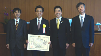 ![]() 左二: 柳樂 幸雄(社長) 左三: Mikazuki(國土、 基礎設施、交通和旅游的國會秘書) |