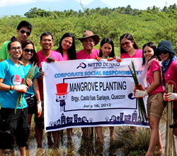 日東電工菲律賓參與支持一項有助于環境保護和恢復的倡議項目。 該公司于 2012 年(財政年)參與了兩個再造紅樹林活動,其中一個是由拉古娜科技園于 2012 年 6 月 16 日贊助的種植紅樹活動,而另一個是于 2013 年 2 月 3 日舉行的 2013 年度 Condura 航線馬拉松比賽——一項圍繞紅樹林的賽跑項目。