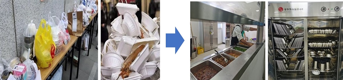 Nitto Matex(深圳)CO., LTD. 此前沒有員工餐廳,因此員工只能攜帶食物,從而造成了大量浪費。成立餐廳后,不再使用一次性餐具。