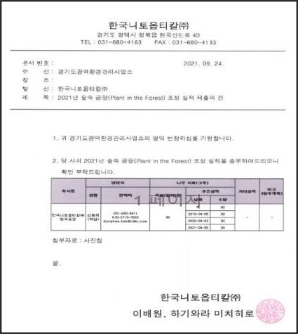 Korea Nitto Optical Co., Ltd. 參與政府組織的“森林工廠活動”已有三年時間,提高了員工對環境問題的認識。
