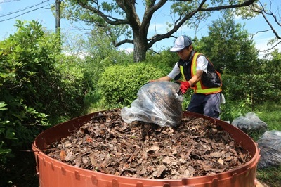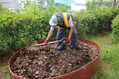 Nitto Himawari Kameyama Corporation 通過收集所清理的落葉制造堆肥。曾經被焚燒的落葉現在被升級,回收并用作觀賞向日葵的肥料。