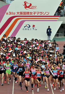 2012 年 1 月 29 日,為迎合“我們激情滿懷地支持挑戰者!”這一主題, 我們在今年聯合主辦了第八屆大阪國際女子馬拉松。 約有 1,700 名日東電工集團的員工及其家人來到了體育場,其中有約 550 名員工以志愿者的身份參加了這次賽事。 一些志愿者幫助清理現場,而另外一些則為運動員提供包扎服務。 今年我們聯合主辦了“大阪享受跑步”比賽,參賽者包括小學生和老年人。 1,417 名參賽者和高橋尚子(2000 年悉尼奧運會女子馬拉松冠軍)這位特殊的嘉賓一起按照各自的節奏享受慢跑運動。 |