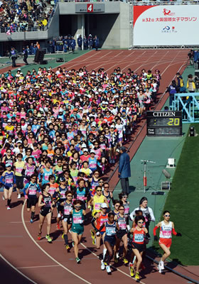 2013 年 1 月 27 日,為迎合“我們激情滿懷地支持挑戰者!”這一主題, 在今年聯合主辦了第九屆大阪國際女子馬拉松。 約有 2,300 名日東電工集團的員工及其家屬來到了體育場,其中有約 685 名員工以志愿者的身份參加了本次比賽。 一些志愿者幫助清理現場,而另外一些則為運動員提供包扎服務。